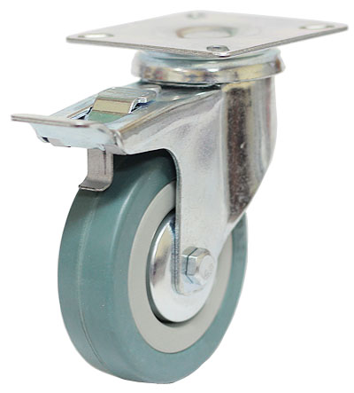ПОВОРОТНОЕ КОЛЕСО СЕРОЕ РЕЗИНОВОЕ КОЛЕСО 100 мм ТОРМОЗ