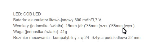 - Wymiary (lampa): 19 mm (dł.) * 35 mm (szer.) * 65 mm (wys.)
