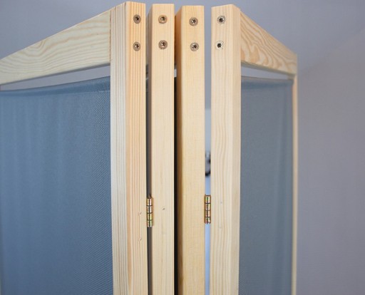 Wypełnieniem parawanu jest sztywna, impregnowana tkanina o strukturze zbliżonej do płótna malarskiego.