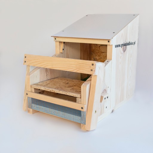 Drewniane, automatyczne gniazdo dla kur niosek.
