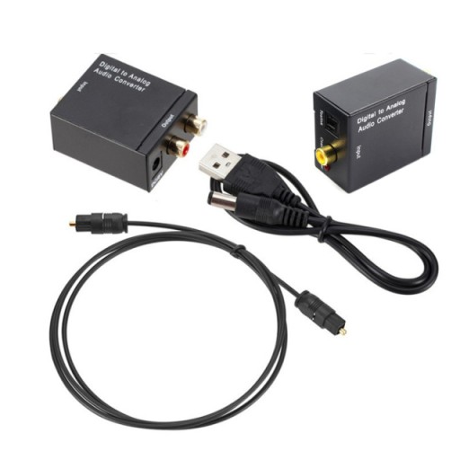 Konwerter cyfrowo analogowy posiada w zestawie 2 przewody. Zasilający USB i optyczny. Przewód zasilający wystarczy wpiąć do portu USB (np. w telewizorze) a z drugiej strony do przetwornika. Przewody sygnałowe należy podłączyć w odpowiedniej konfiguracji (cyfrowo-analogowo). Podłącz swój wzmacniacz audio, głośniki bez potrzeby wymiany telewizora lub systemu grającego. Podwójny wzmacniacz operacyjny wraz z systemem redukcji szumów zadba o najlepsze możliwe efekty audio w twoim zaciszu domowym.