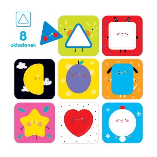 Czas odkryć kształty! Edukacyjny zestaw sprawdzi się jako pierwszy puzzlowy sorter dla maluchów. Składa się 8 dużych dwuelementowych układanek. Zabawa polega na dopasowywaniu wyjmowanych elementów o różnych kształtach do odpowiednich tabliczek.