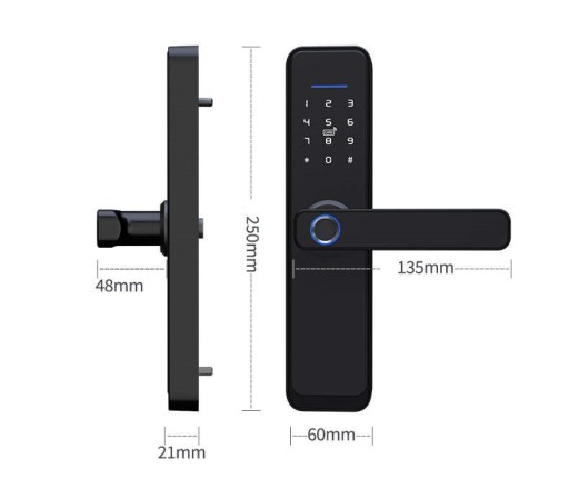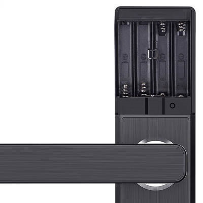 - Elektroniczna klamka otwierana na odcisk palca/ kartę RFID, kod pin, tymczasowy kod pin oraz standardowym kluczem