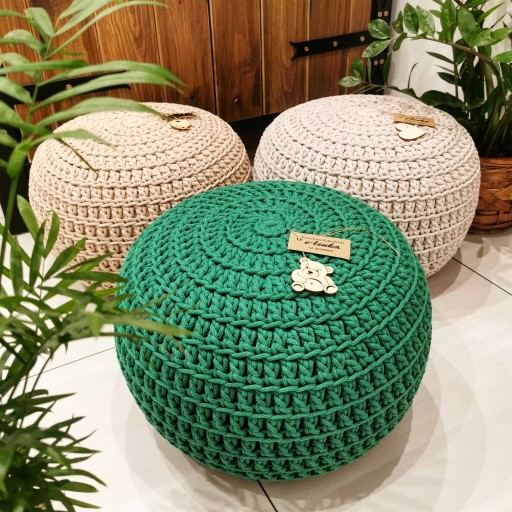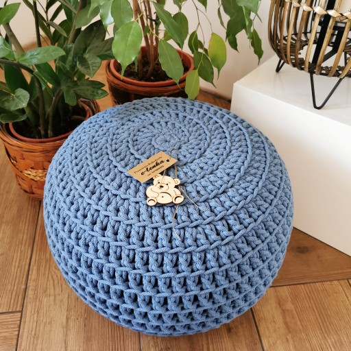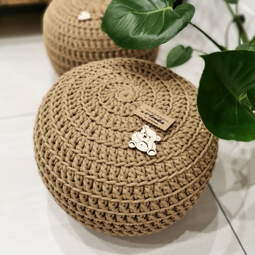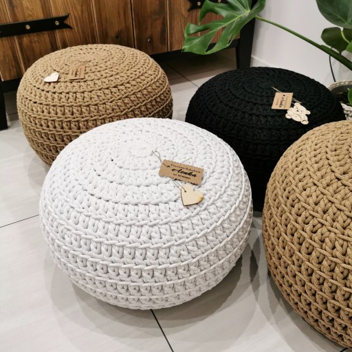 Ręcznie wykonany puf z grubego sznurka bawełnianego o średnicy 5mm.
