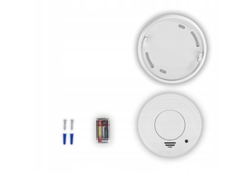 Czujnik dymu, bateria, instrukcja obsługi, materiały montażowe