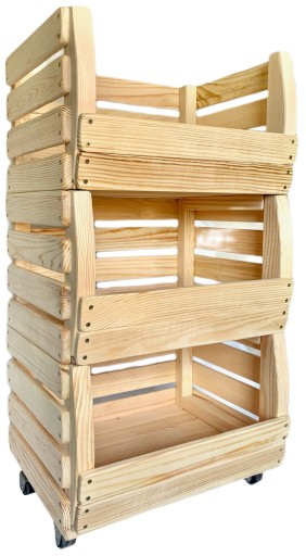 Cena widoczna w ofercie obejmuje regał składający się z trzech skrzynek, zestaw można rozbudowywać o kolejne skrzynki ustawiane jedna na drugiej.