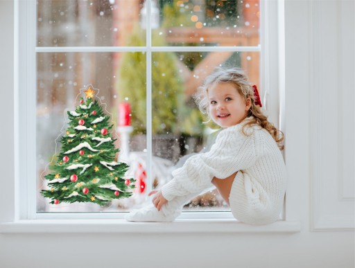 Naklejka transparentna ŚWIĄTECZNA na okno CHOINKA naklejka dwustronna