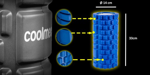 Wałek do masażu Coolmed posiada zróżnicowaną powierzchnię – dwa rodzaje powierzchni w czterech strefach. Są one przeznaczone do różnorodnych form masażu. Użytkowanie wałka Coolmed ma za zadanie usuwać napięcie mięśniowe, oraz rozbijać zakwasy i punkty spustowe.
