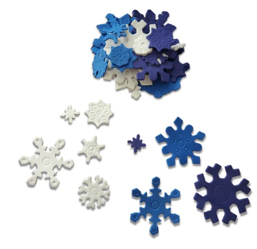 Średnice poszczególnych śnieżynek to około: 20mm / 30mm / 50mm / 55mm.
