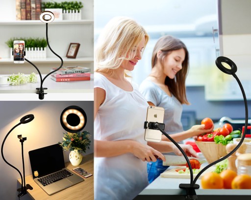 💡LAMPA PIERŚCIENIOWA LED Z UCHWYTEM SELFIE NA SMARTFONA Z KLAMRĄ💡