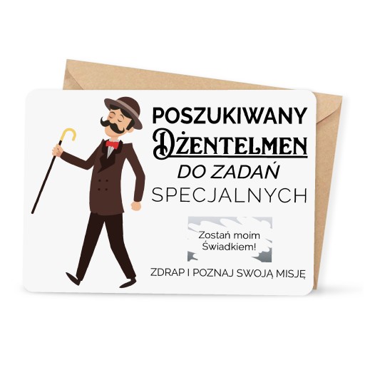 Personalizowana Karta Ze Zdrapką z Prośbą o Świadkowanie + Koperta Kraft