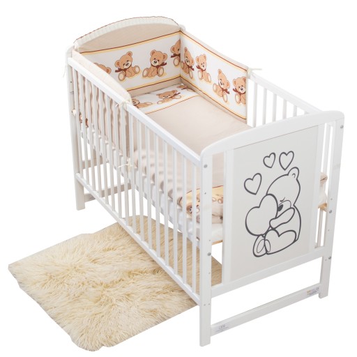 3. Ochraniacz z Misiami. Piękny ochraniacz osłania zarówno przed przeciągiem jak i zabezpiecza dziecko przed uderzeniami o szczebelki. Dzieci które zaczynają się przewracać, siadać czy machają rączkami mogą się teraz bezpiecznie bawić w łóżeczku.