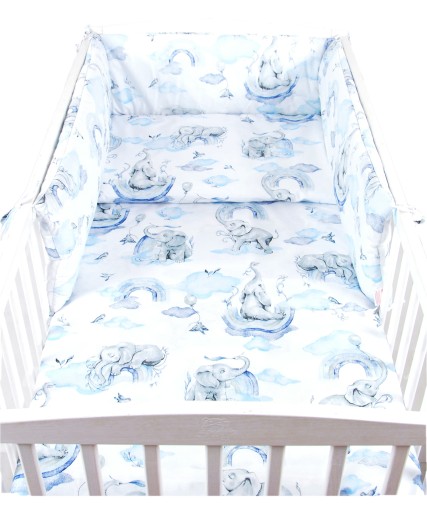Ochraniacz jest wypełniony włókniną puszystą o gramaturze 300g/m2, posiada liczne troczki do zamocowania na szczebelkach