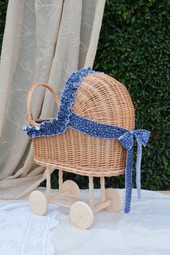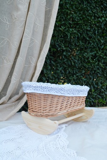 WÓZEK WIKLINOWY NATURALNY Z FALBANKĄ + KOŁYSKA
