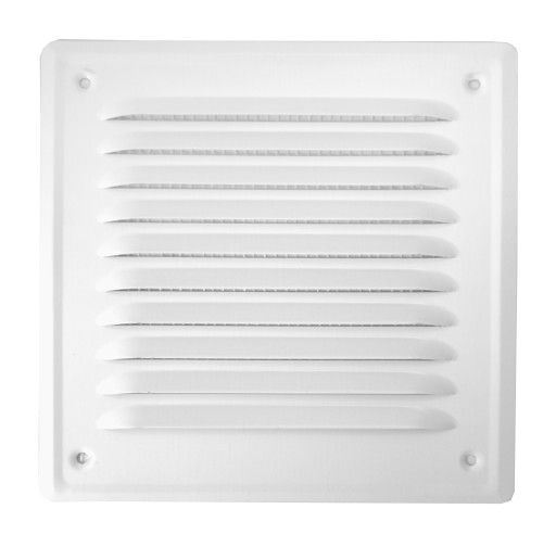 Kratka wentylacyjna do montowania wewnątrz i na zewnątrz budynku, zabezpiecza otwory wentylacyjne przed dostaniem się do nich niepożądanych rzeczy takich jak ptaki czy woda.