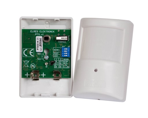 Detektor wykrywa ruch osób w pomieszczeniu i przeznaczony jest do stosowania w bezprzewodowych systemach alarmowych. Współpracuje z centralą CB32 i odbiornikami Elmes Elektronik. Zasilany jest z baterii 3V (CR123A) i charakteryzuje się doskonałymi parametrami detekcji podczerwieni, bardzo małym poborem energii oraz dynamicznie kodowaną transmisją o alarmie zapewniając jej maksymalną ochronę. Analizuje ruch osób w przestrzeni chronionej i w zależności od ustawionej czułości detekcji generuje transmisję alarmową. Bardzo mały pobór prądu i kontrolowany przez mikroprocesor system oszczędzania energii zapewnia pracę detektora powyżej 5 lat bez wymiany baterii. Odporność na zwierząta do 20 kg. Detektor sygnalizuje otwarcie obudowy (funkcja antysabotażowa TAMPER) oraz spadek napięcia baterii zasilającej. Zastosowana wysokiej jakości szerokokątna soczewka Fresnela może być opcjonalnie wymieniona na soczewki kurtynowe: pionową lub poziomą. Obudowa detektora umożliwia również montaż narożny, a użycie dodatkowego uchwytu przegubowego dostępnego oddzielnie, ułatwia precyzyjne ustawienie detektora w każdej płaszczyźnie. Wewnętrzna antena nadawcza umożliwia bezpieczny zasięg działania detektora wewnątrz mieszkań, domów, sklepów, biur, itp.