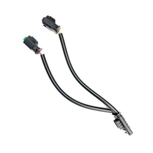 Elektryczna wiązka budowy termostatu w wersji na dwa czujniki (cztery przewody). Do zastosowania także w pojazdach, w których obudowa termostatu oryginalnie występuje z 4 czujnikami. Wiązka odpowiednia do zamontowania w pojazdach z silnikami benzynowymi o pojemności