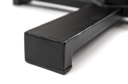 Wysokiej jakości materiały (stal) gwarantują wysoką estetykę oraz trwałość produktu. Podstawa wykonana jest z solidnych profili o przekroju 60x20 mm, zapewniając stabilność i odporność nawet na wysokie obciążenia. Dzięki takiemu rozmiarowi profilu projekt zyskuje bardzo korzystne proporcje. Komin stojaka ma wymiary w przekroju 80x80 mm i wysokość 16 cm. Stojak malowany proszkowo posiada gładką fakturę.