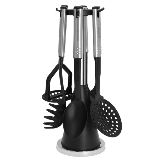 7 częściowy zestaw przyborów kuchennych wykonanych ze stali nierdzewnej i nylonu termoplastycznego KINGHOFF. Przybory dedykowane do naczyń z powłokami teflonowymi i ceramicznymi wrażliwymi na zarysowania. W komplecie stojak, który umożliwi przechowywanie ich w porządku a przybory będą zawsze w zasięgu ręki.
