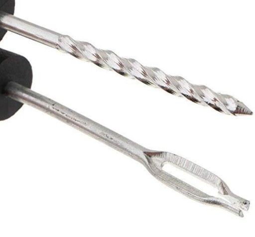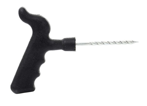 2. Posmaruj frez załączonym klejem i wbij w dziurę pozostawioną po gwoździu zgodnie z kątem pod jakim ten gwóźdź wszedł w oponę, aby dobrze wypełnić dziurę klejem.