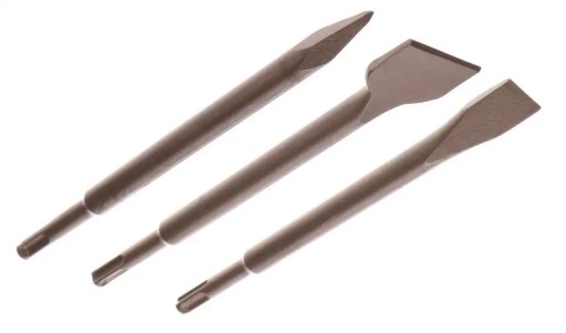 - W zestawie: dłuto płaskie 20x250 mm, to płaskie 40x250 mm, dłuto spiczaste 250 mm