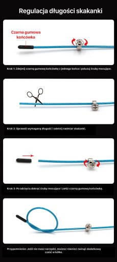 Możesz dostosować długość skakanki do swojego wzrostu. 300 centymetrową linkę możesz dostosować tymczasowo lub skrócić na stale.
