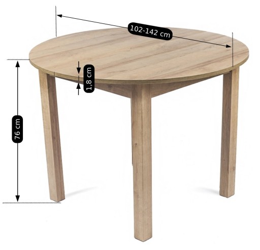 - Kolor stołu: dąb riviera
