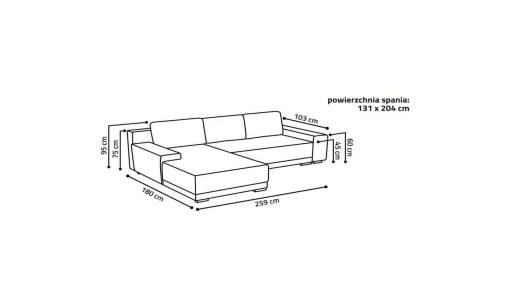 - Narożnik z funkcją spania oraz pojemnikiem na pościel.