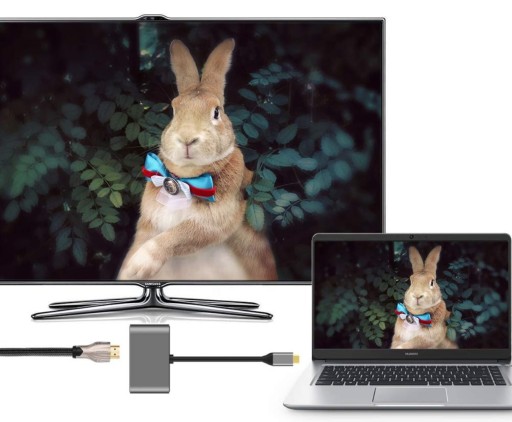 ⭐ Adapter HUB USB-C umożliwia przesyłanie sygnału audio i video z laptopa na ekran monitora, telewizora lub projektora z wejściem HDMI/VGA w rozdzielczości do 4K.