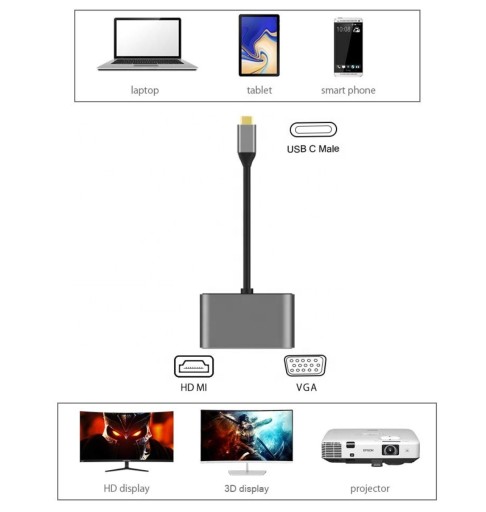 HUB USB-C ADAPTER PRZEJŚCIÓWKA 4k HDMI VGA