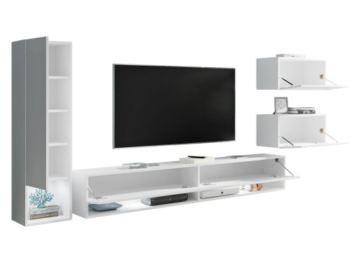 Przedstawiona kolekcja mebli będzie idealnym miejscem na sprzęt RTV, książki oraz elementy dekoracyjne.