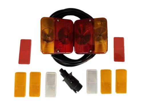 КОМПЛЕКТ ЗАДНИХ ФОНАРОВ ПРИЦЕПА, ОТРАЖАТЕЛИ, 7-КОНТАКТНЫЙ РАЗЪЕМ, КАБЕЛЬ 5М