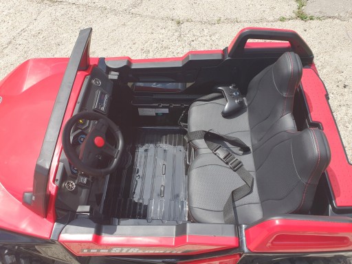 Pojazd posiada miękki fotel z dwoma pasami bezpieczeństwa