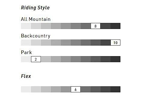 style jazdy All Mountain 8/10, Backcountry 10/10, Park 2/10, Flex 6/10