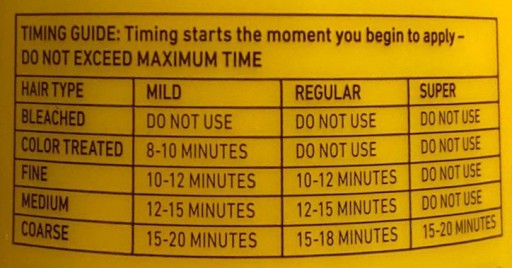 Nie stosuj produktu na podrażnioną skórę. Nie stosuj na włosy rozjaśniane. Nie stosuj na trwale farbowane, zniszczone włosy. Nie przekraczaj maksymalnych limitów czasowych. Trzymaj poza zasięgiem dzieci. Unikaj kontaktu z oczami - może powodować silne uszkodzenia.