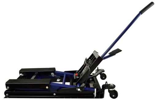 Podnośnik hydrauliczny przeznaczony do serwisów quadów, motorów, traktorków ogrodowych, skuterów wodnych itp.Solidna, mocna konstrukcja ze stalowych profili. Urządzenie wyposażone w praktyczny pedał nożny.Dwa kółka skrętne z hamulcem, które umożliwiają płynne przesuwanie podnośnika.
