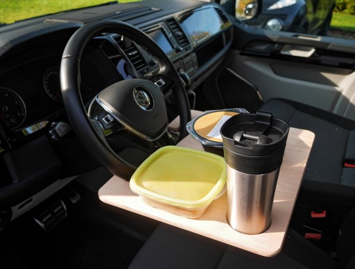 ➡️ Uniwersalny stolik na kierownicę to proste i niezwykle przydatne rozwiązanie dla każdego kierowcy ceniącego sobie wygodę w podróży. Po nałożeniu na kierownice tworzy stabilny poziomy blat zapewniając komfortową pozycję podczas pracy i posiłku. Stolik może posłużyć jako podstawka pod laptop, taca do jedzenia i picia oraz podkładka do wypełniania dokumentów. Produkt wykonany jest z 5 mm drewnianej sklejki dzięki czemu jest on dużo bardziej wytrzymały niż plastikowe odpowiedniki.
