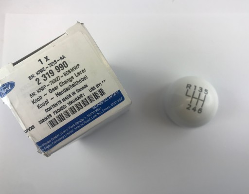 Biała gałka dźwigni zmiany biegów z wzorem skrzyni 6-biegowej