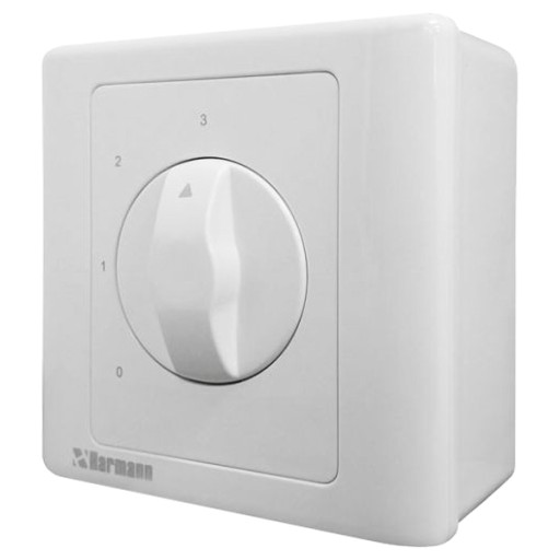 Przełącznik biegów do jednofazowych silników (wentylatorów) wielobiegowych. Możliwość podłączenia dowolnej ilości urządzeń pod warunkiem nie przekraczania maksymalnego prądu znamionowego 1.6A i maksymalnego obciążenia 400 W (łączna moc urządzeń). Przełącznik przeznaczony jest do montażu wewnątrz pomieszczeń. Niedopuszczalny jest montaż na powierzchniach palnych. Stopień ochrony IP50. Kompaktowa budowa i łatwy sposób montażu pozwala na szybką i sprawną instalację.