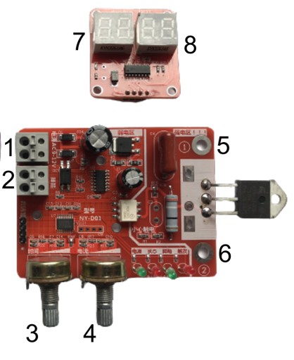 6. Wyjście zasilające transformator zgrzewarki 230 V~