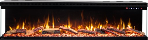 Jego panoramiczny wygląd wyróżnia się w każdym pomieszczeniu. Jego największą cechą jest to, że posiada trójstronne palenisko!
