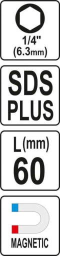 АДАПТЕР YATO SDS PLUS HEX ДЛЯ БИТ 1/4 ДЮЙМА YT-04690