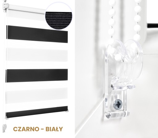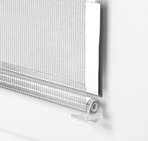 - Dwa przeciwległe pasy materiału, składające się z naprzemiennych warstw przezroczystych i nieprzezroczystych, pozwalają na precyzyjną regulację rolety pod kątem ilości wpadającego światła lub stopnia zaciemnienia.