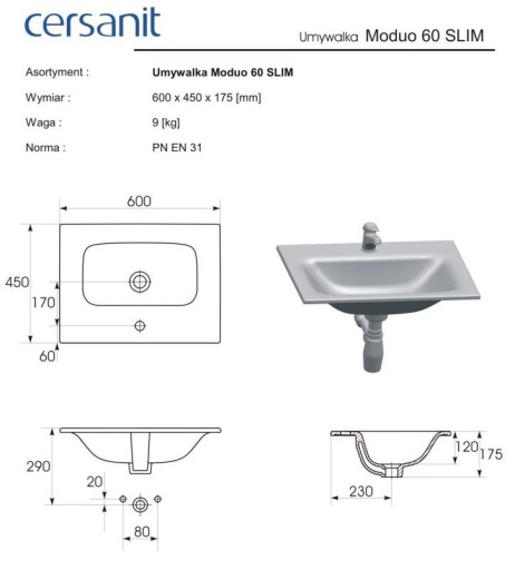UMYWALKA WPUSZCZANA 60 CERSANIT MODUO K116-043