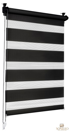 Rolety dzień i noc Sonello dostępne są w siedmiu wersjach kolorystycznych: beżowej, białej, czarno-białej, czarnej, szarej, fioletowej oraz kremowej. W każdej z nich kolor mechanizmu odzwierciedla kolor materiału. Ponadto do wyboru dostępne są produkty o szerokości od 30 cm do 120 cm z odstępem co 5 cm i trzech możliwych długościach – 130 cm, 150 cm oraz 210 cm. W celu zakupu rolety w kolorze innym niż ten widniejący w tytule, zapraszamy na nasze pozostałe aukcje.