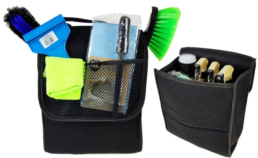 Na spodzie i na tylnej ścianie kuferka znajdują się mocne rzepy. Kuferek pozwala na przechowywanie wielu przedmiotów i pomaga utrzymać porządek we wnętrzu samochodu. Zabezpiecza przedmioty oraz wnętrze bagażnika przed możliwym uszkodzeniem.