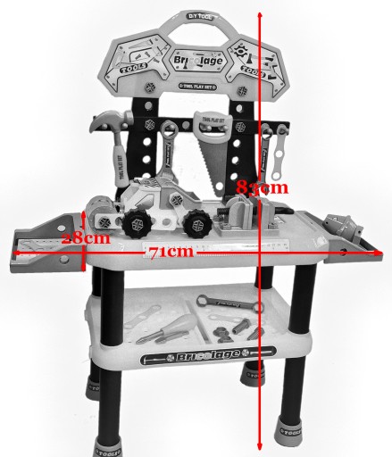 NARZĘDZIA, DUŻY WARSZTAT MAJSTERKOWICZA - ZESTAW 97 EL. DODATKOWO TABLICZKA Z IMIENIEM OBDAROWANEGO DZIECKA.
