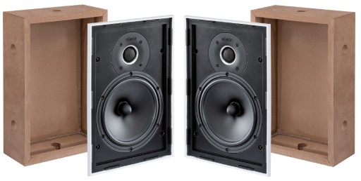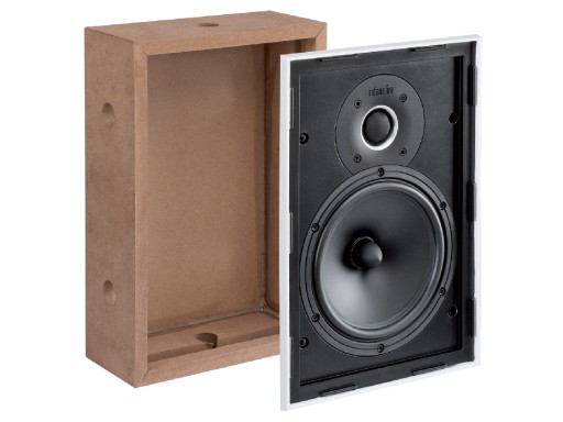 Głośnik można zainstalować bezpośrednio na płycie karton-gips bez użycia dodatkowych akcesoriów; w przypadku montażu na ścianach murowanych zaleca się użycie dołączonej drewnianej obudowy.
