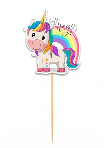 Topper wykonany jest z grubego papieru. Idealny dodatek do tortu dla małych fanów jednorożcy