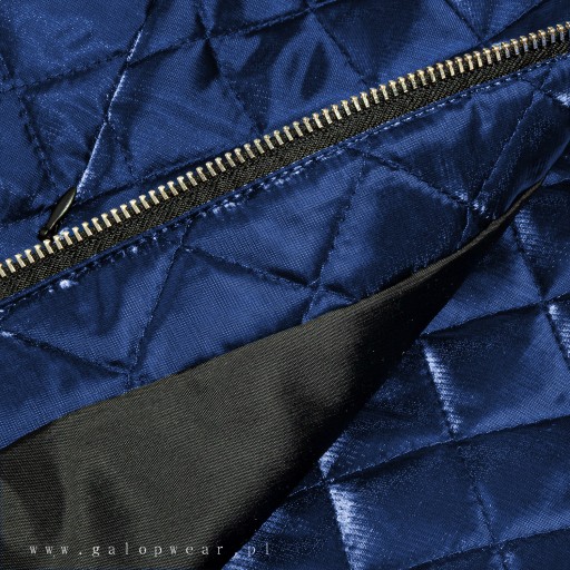 – zapięcie na zamek pod szyję, ze stójką ozdobioną taśmą #galop,